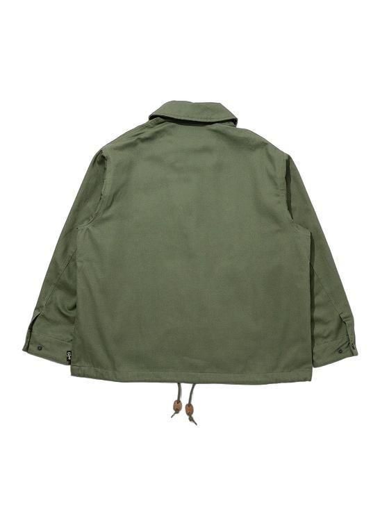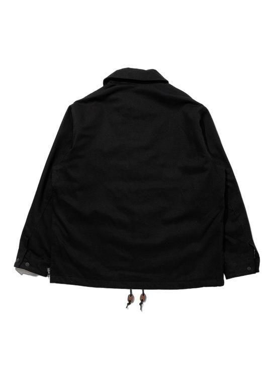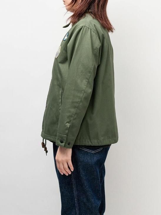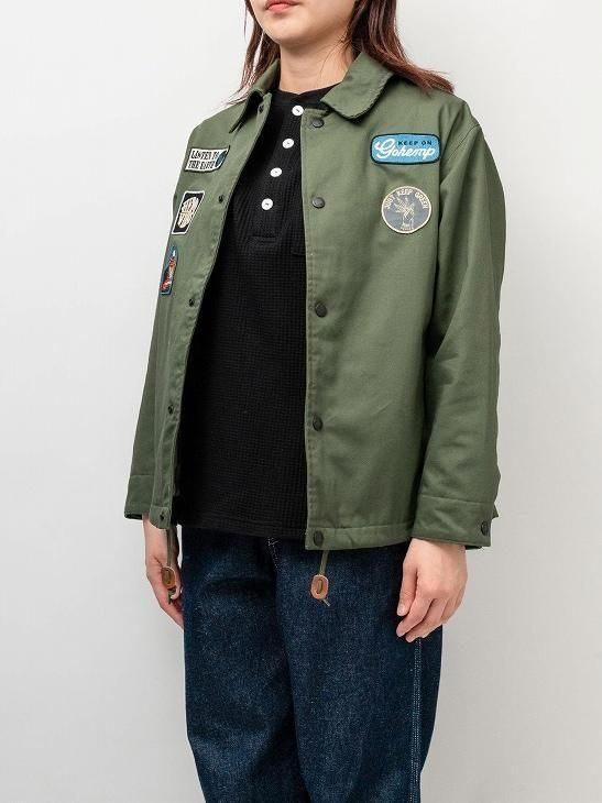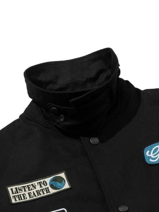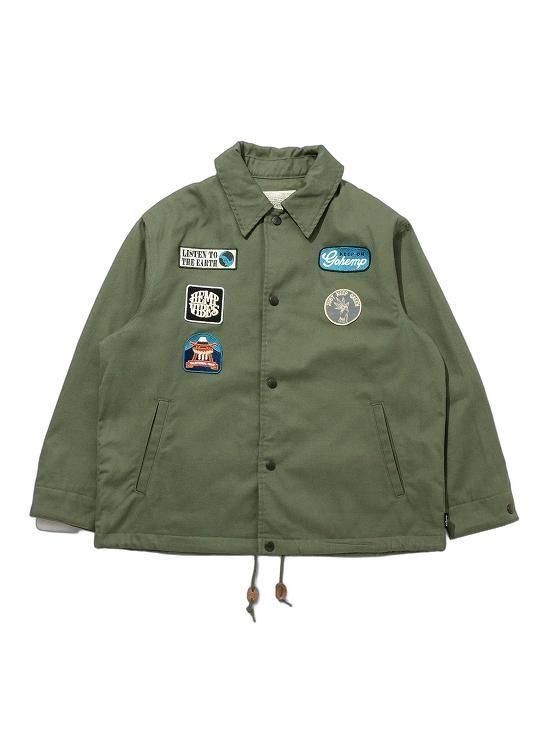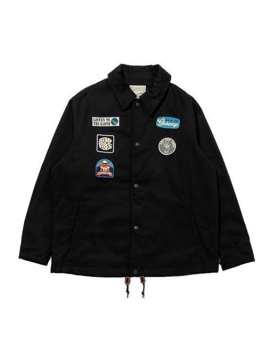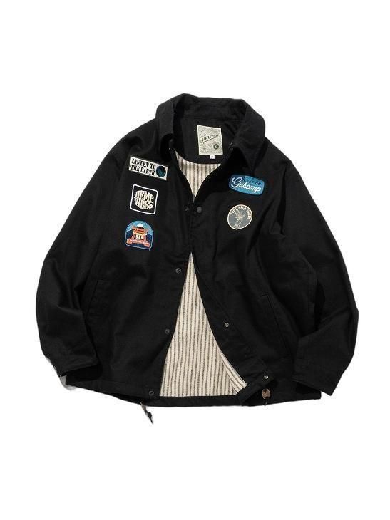 オリジナルワッペンをあしらったチンストラップ付きコーチタイプジャケット。