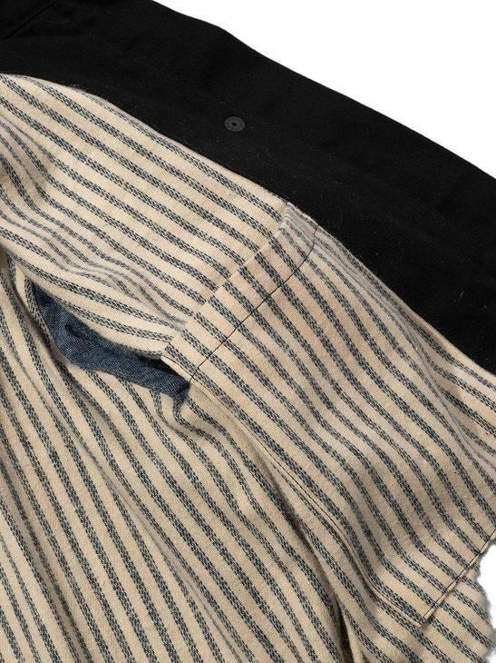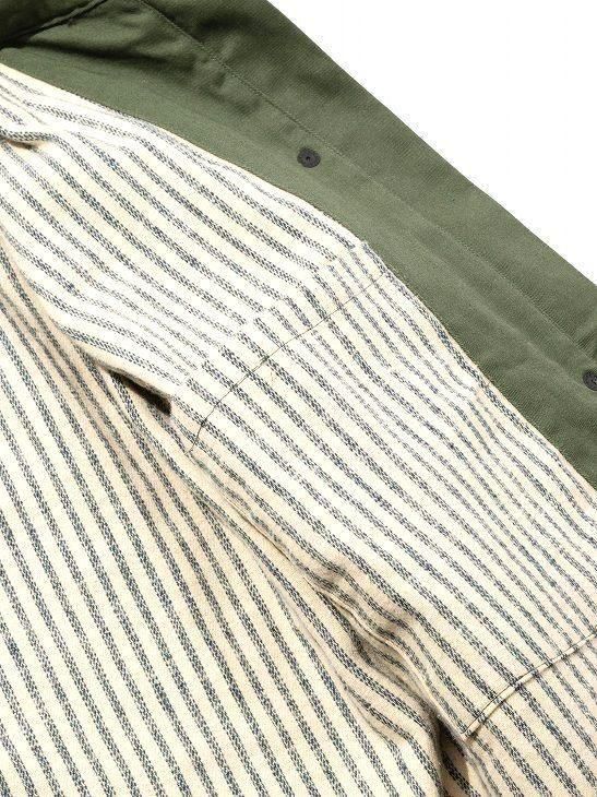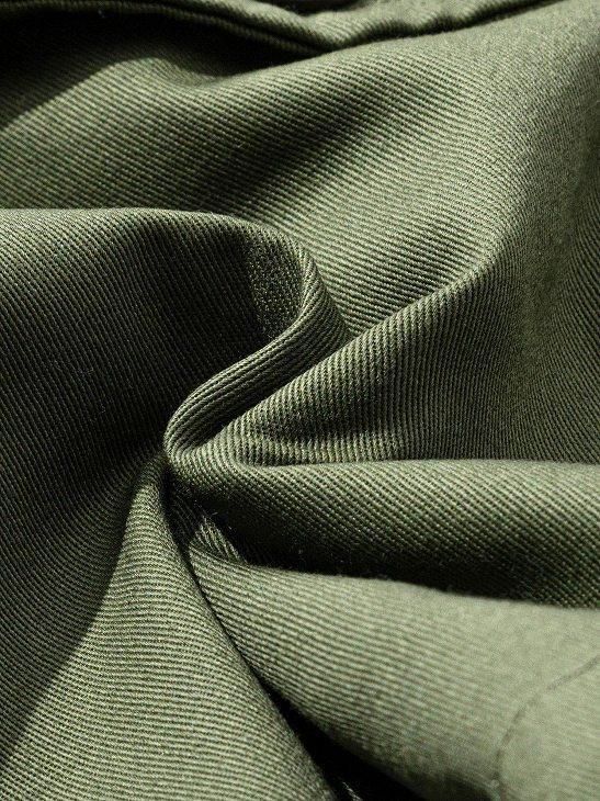 首まわりに収納可能な簡易フードやフラップポケットなどM65のディテールを採用し、シルエットを現代的にアップデートしています。