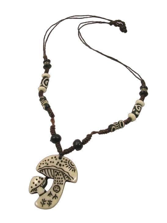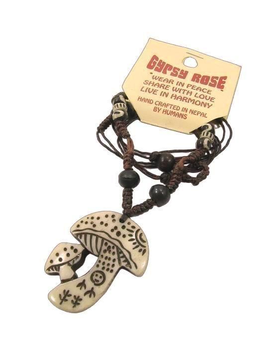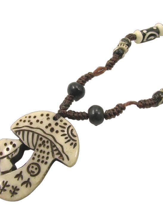 MAGIC MUSHROOMS BONE CORD NECKLACE