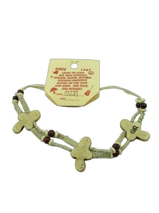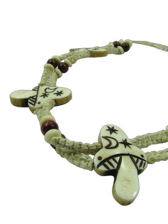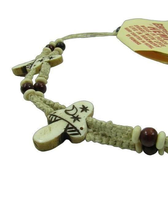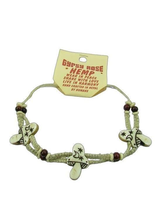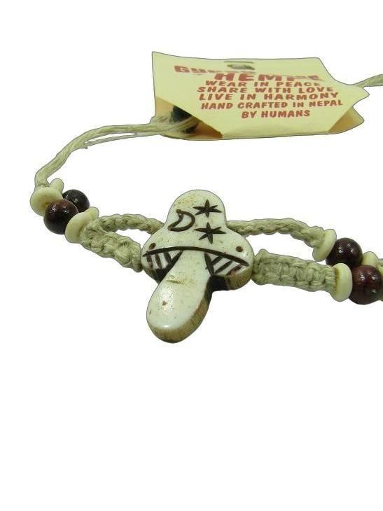 HEMP BEADED DOUBLE STAND BONE MINI MAGIC MUSHROOM BRACELET