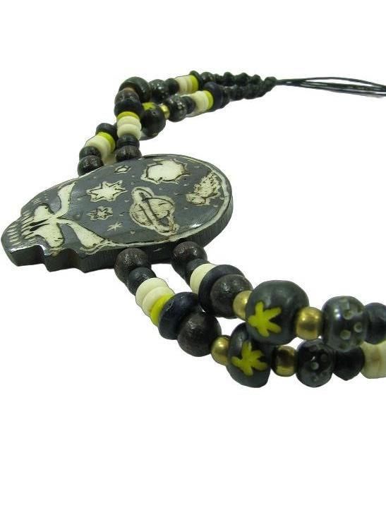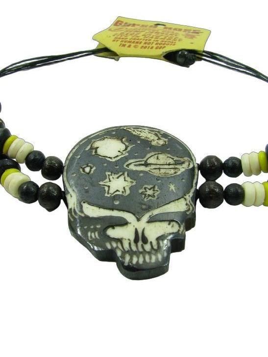 ### 輝ける夜を盗み去る、グレイトフルデッドのデザインが施されたハンドカービングボーンブレスレット