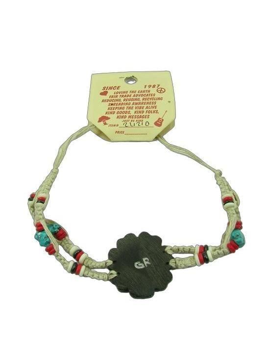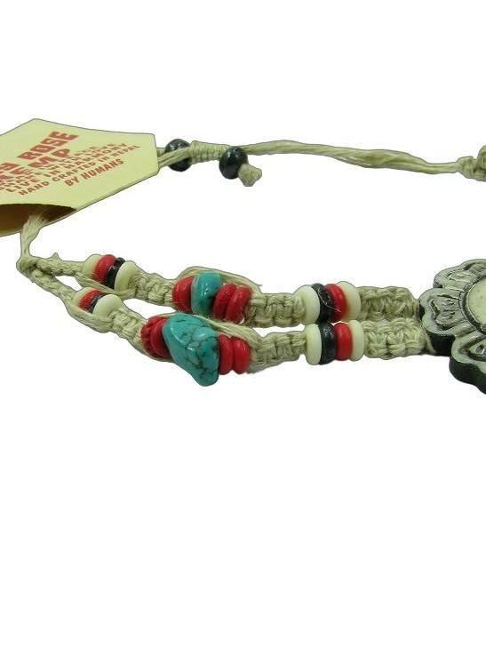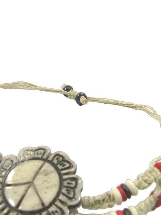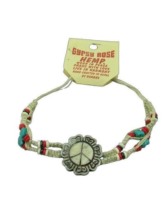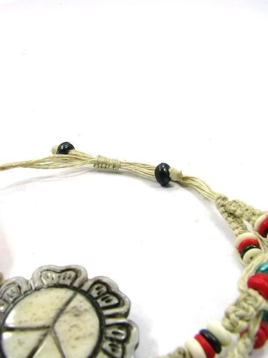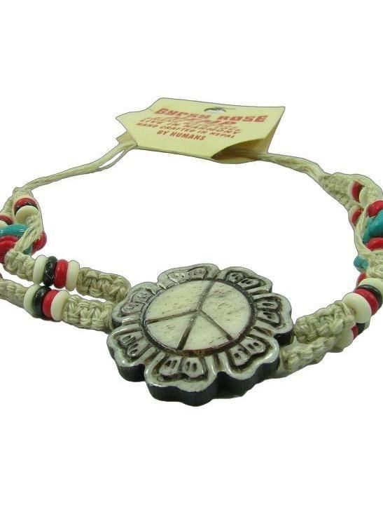 FLOWER CHILD HAND CARVED BONE PEACE FLOWER ADJUSTABLE HEMP BRACELET