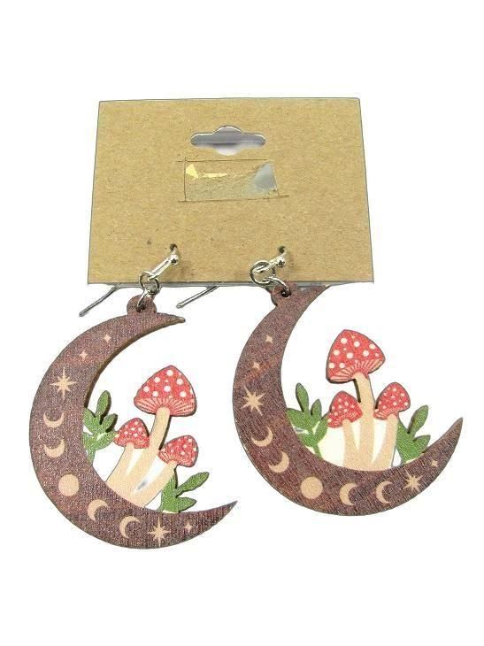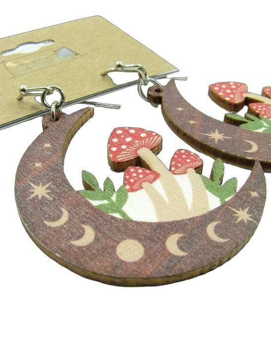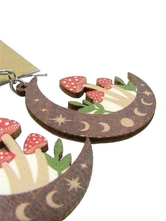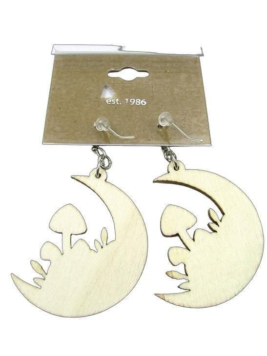 WOOD MUSHROOM MOON EARRING